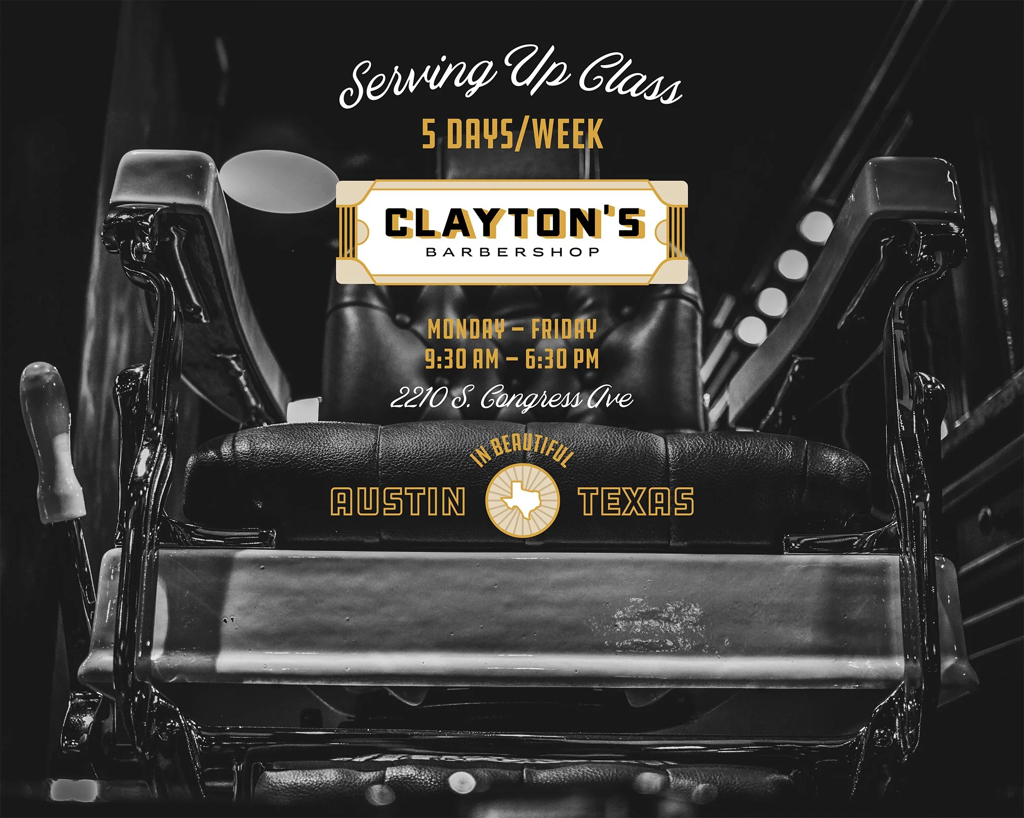 Clayton’s is a traditional, single chair barbershop focusing on quality haircuts. Come stop in and say hello sometime. Appointments preferred.